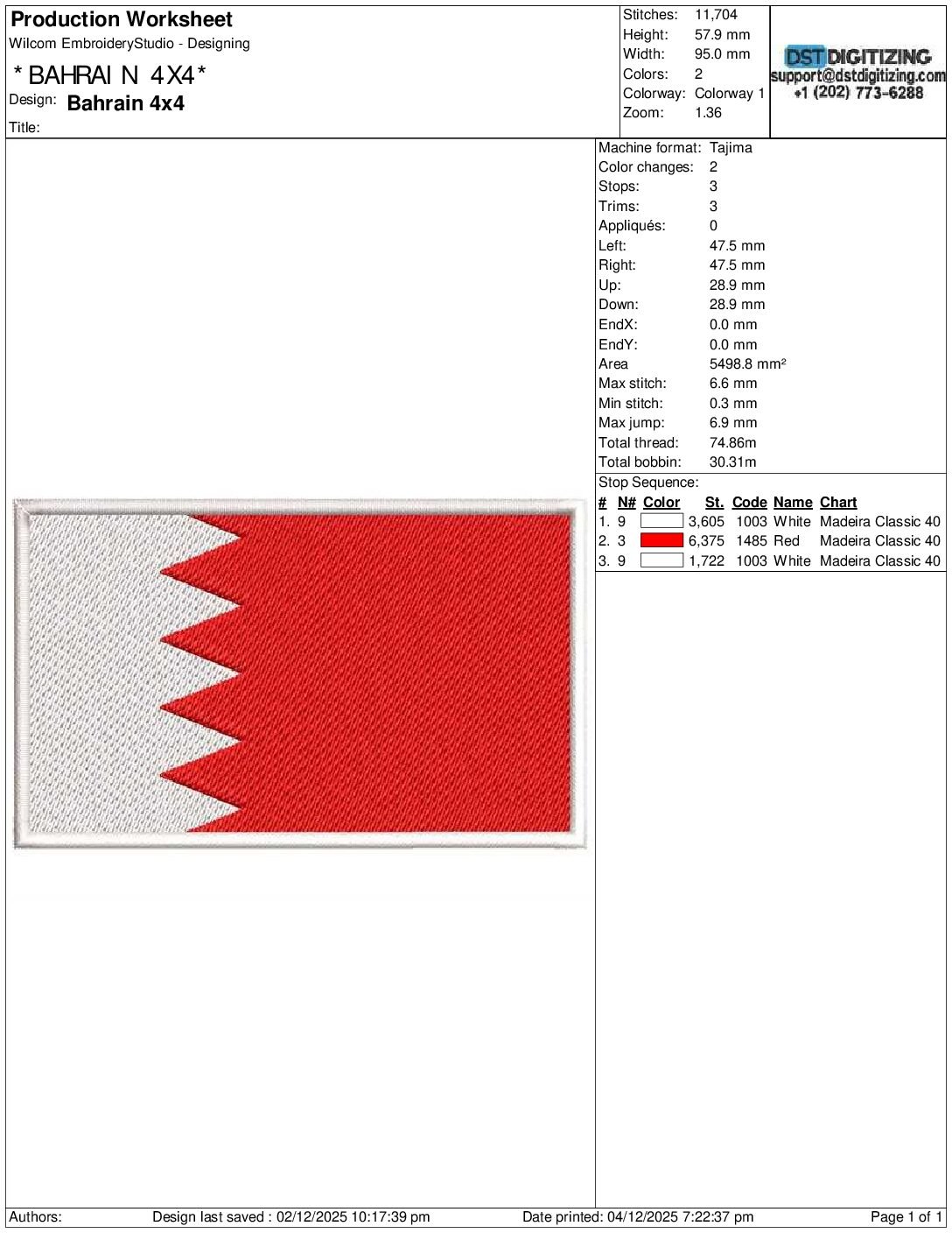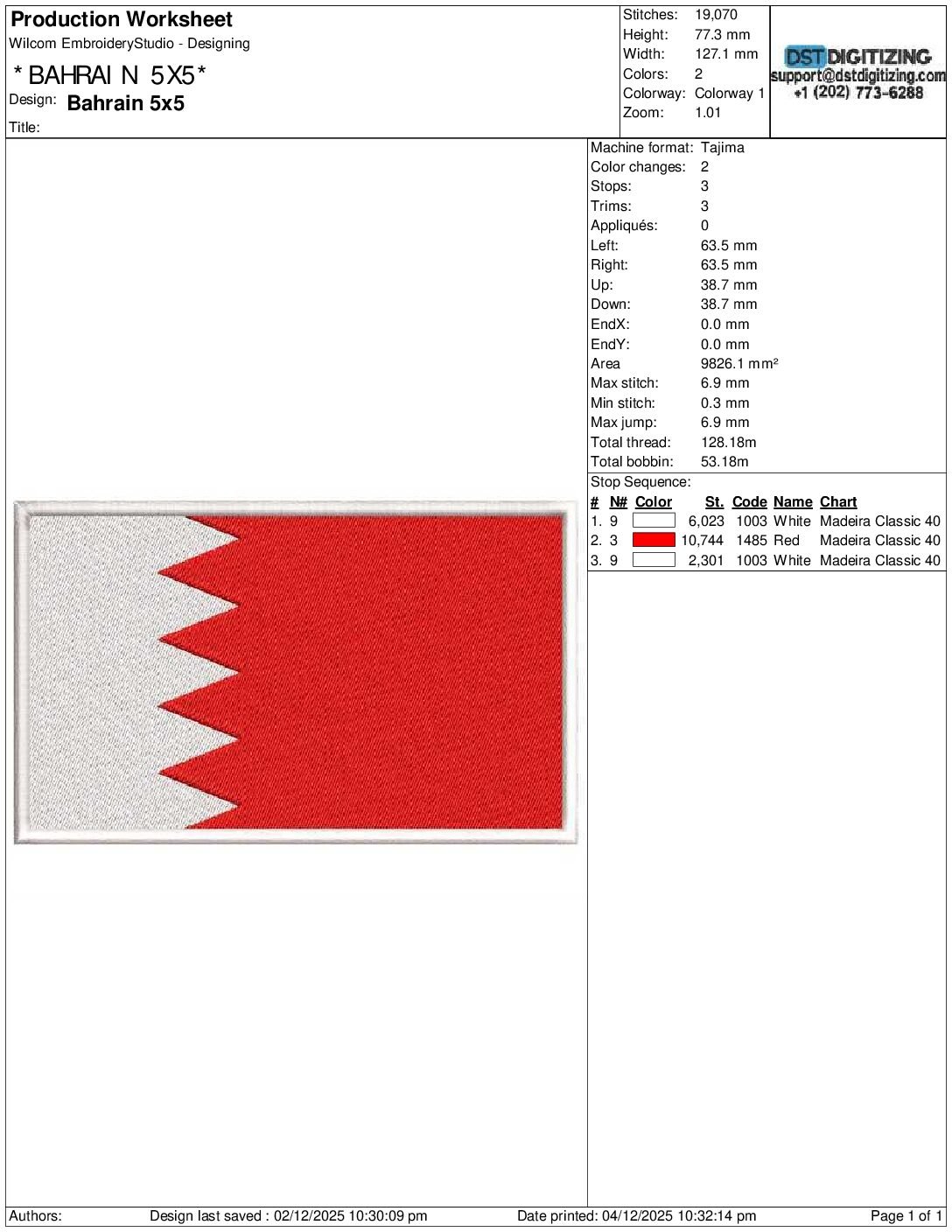 high-quality Bahrain Flag Embroidery Design, professionally digitized for smooth, clean stitching on any fabric.