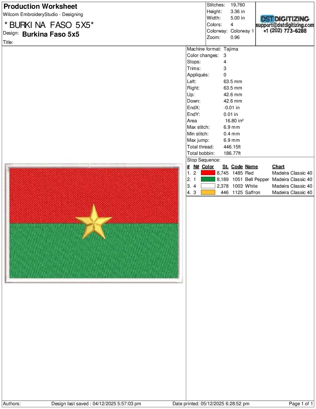 high-quality Burkina Faso Flag Embroidery Design, professionally digitized for smooth, clean stitching on any fabric.