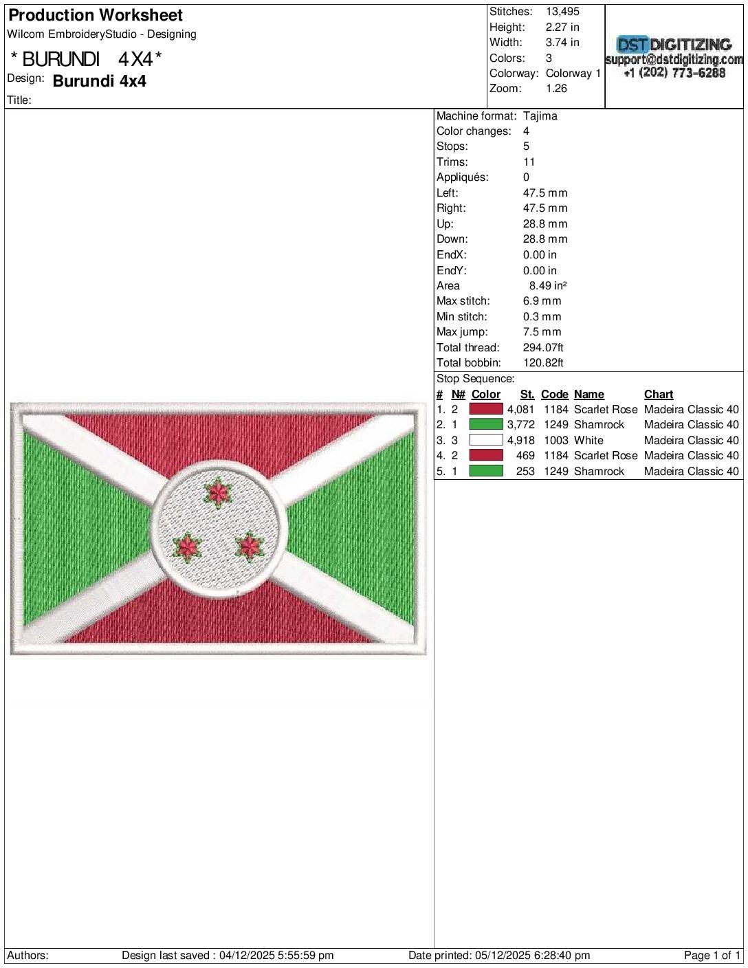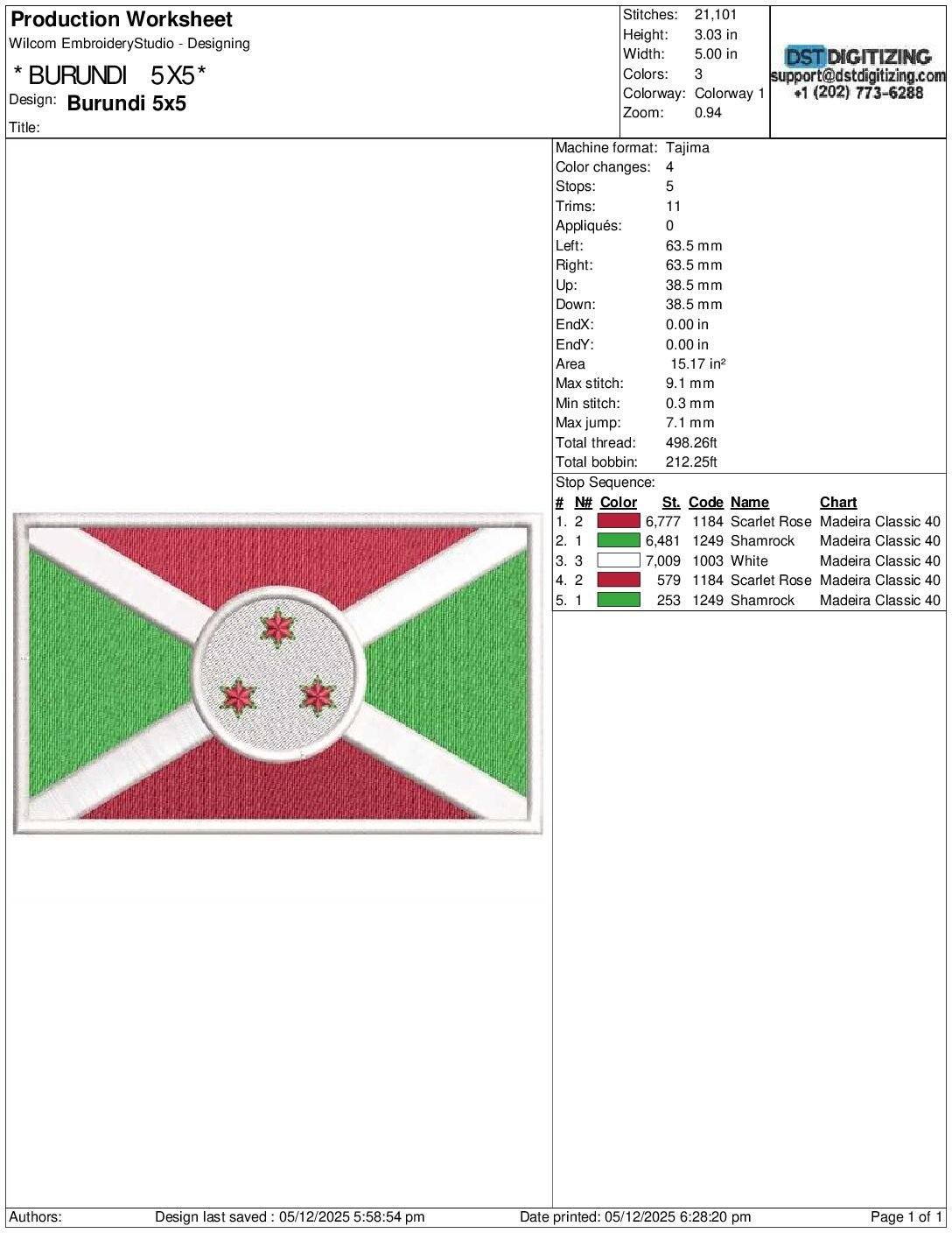 high-quality Burundi Flag Embroidery Design, professionally digitized for smooth, clean stitching on any fabric.