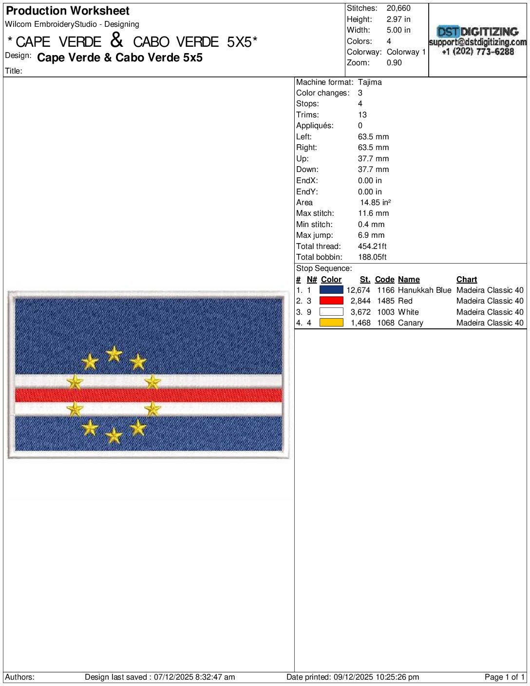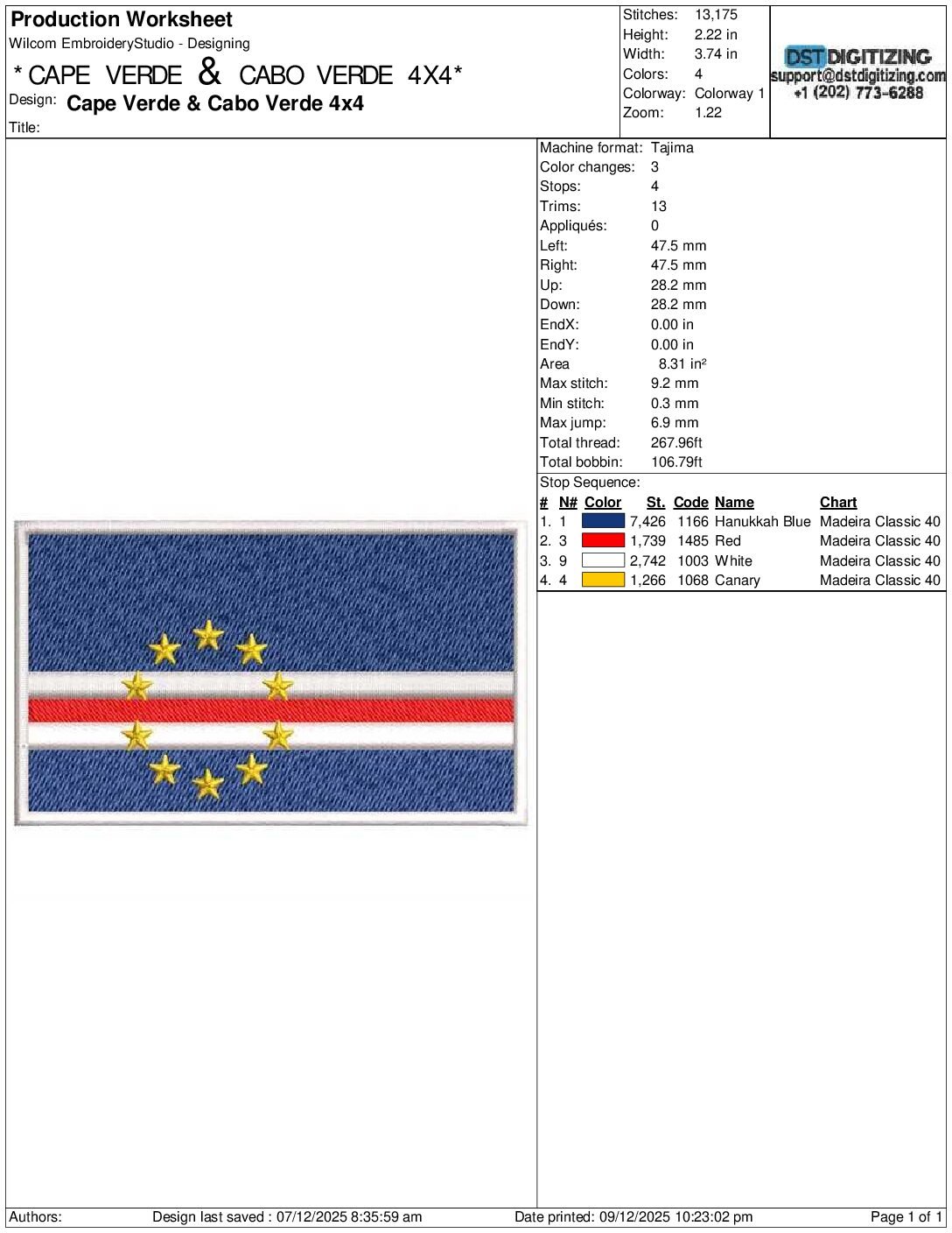 high-quality Cape Verde & Cabo Verde Flag Embroidery Design, professionally digitized for smooth, clean stitching on any fabric.