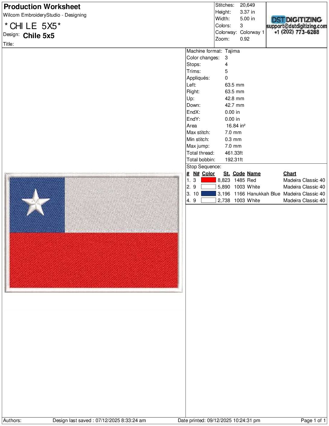 high-quality Chile Flag Embroidery Design, professionally digitized for smooth, clean stitching on any fabric.