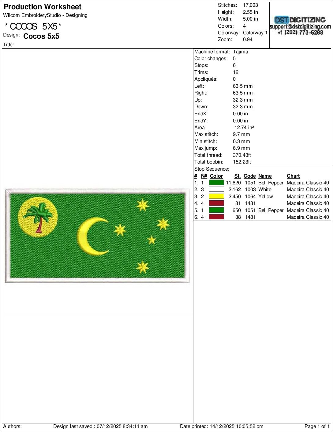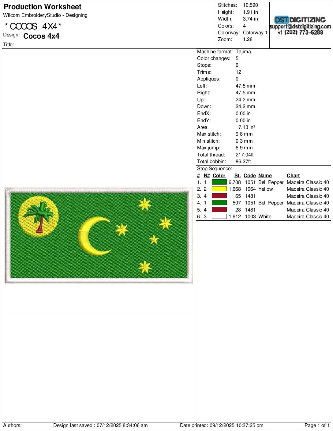 high-quality Cocos Flag Embroidery Design, professionally digitized for smooth, clean stitching on any fabric.