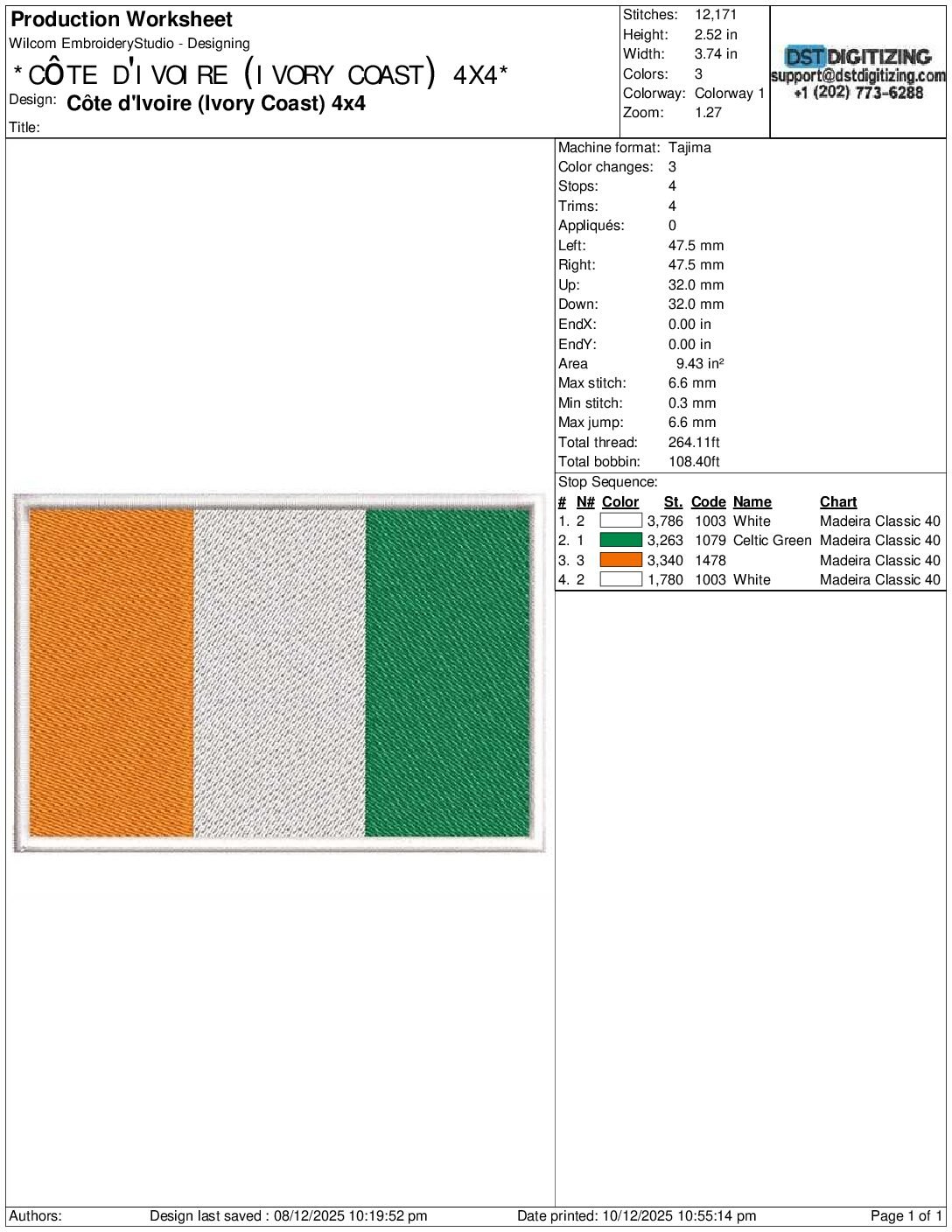 high-quality Côte d’Ivoire (Ivory Coast) Flag Embroidery Design, professionally digitized for smooth, clean stitching on any fabric.