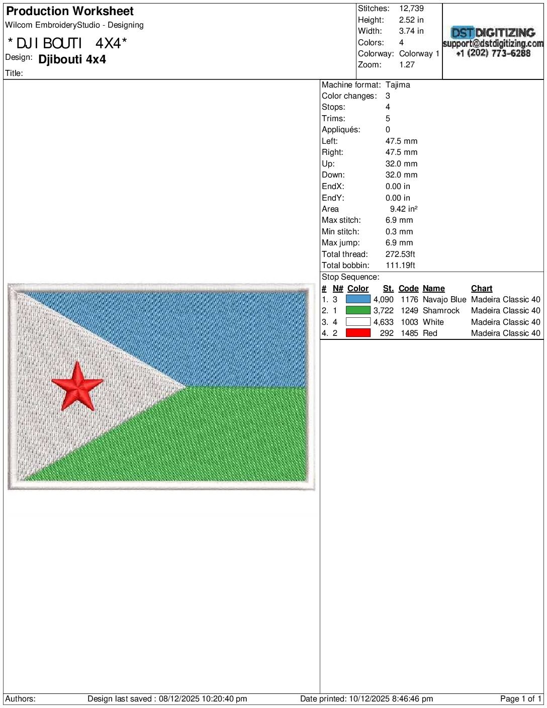 high-quality Djibouti Flag Embroidery Design, professionally digitized for smooth, clean stitching on any fabric.