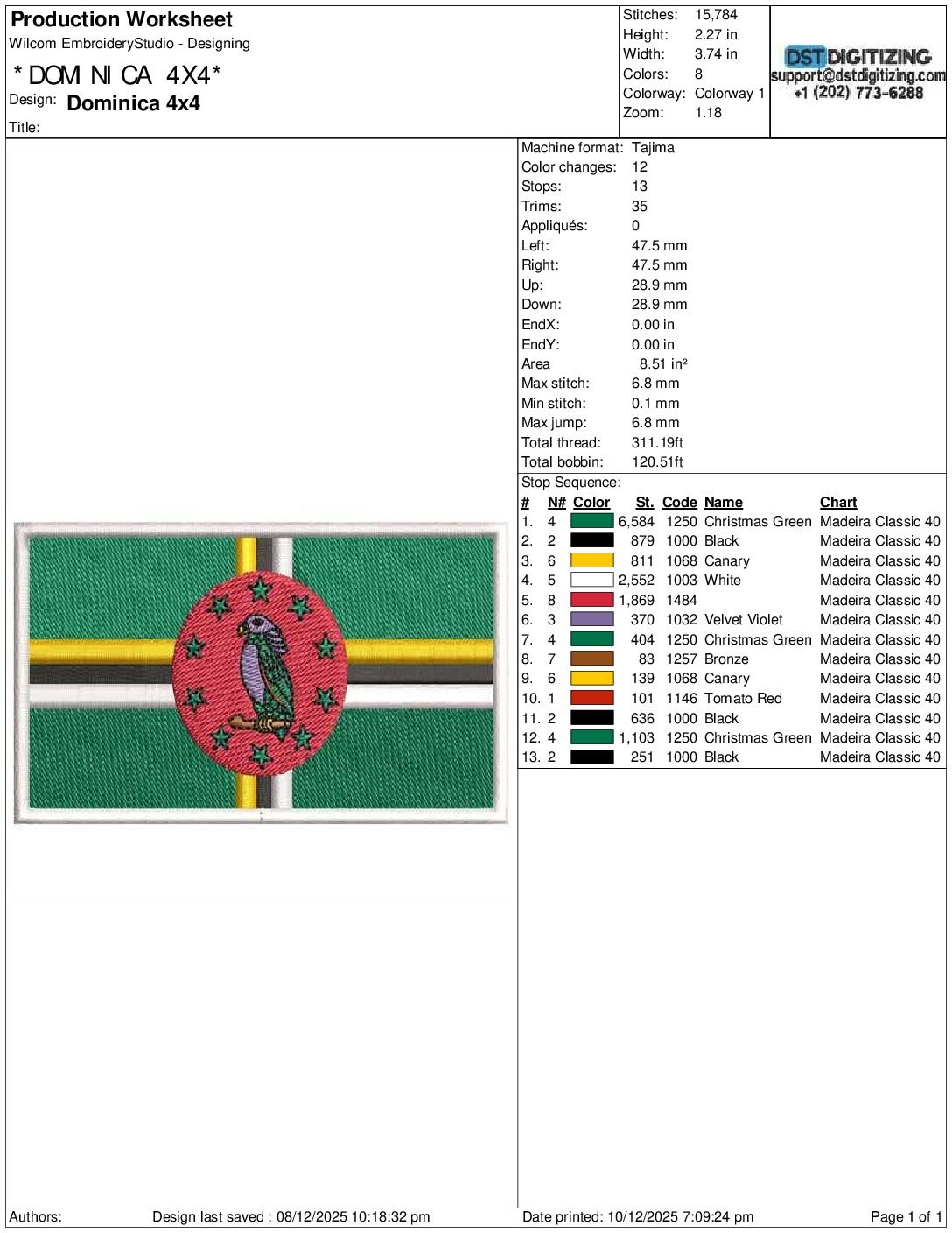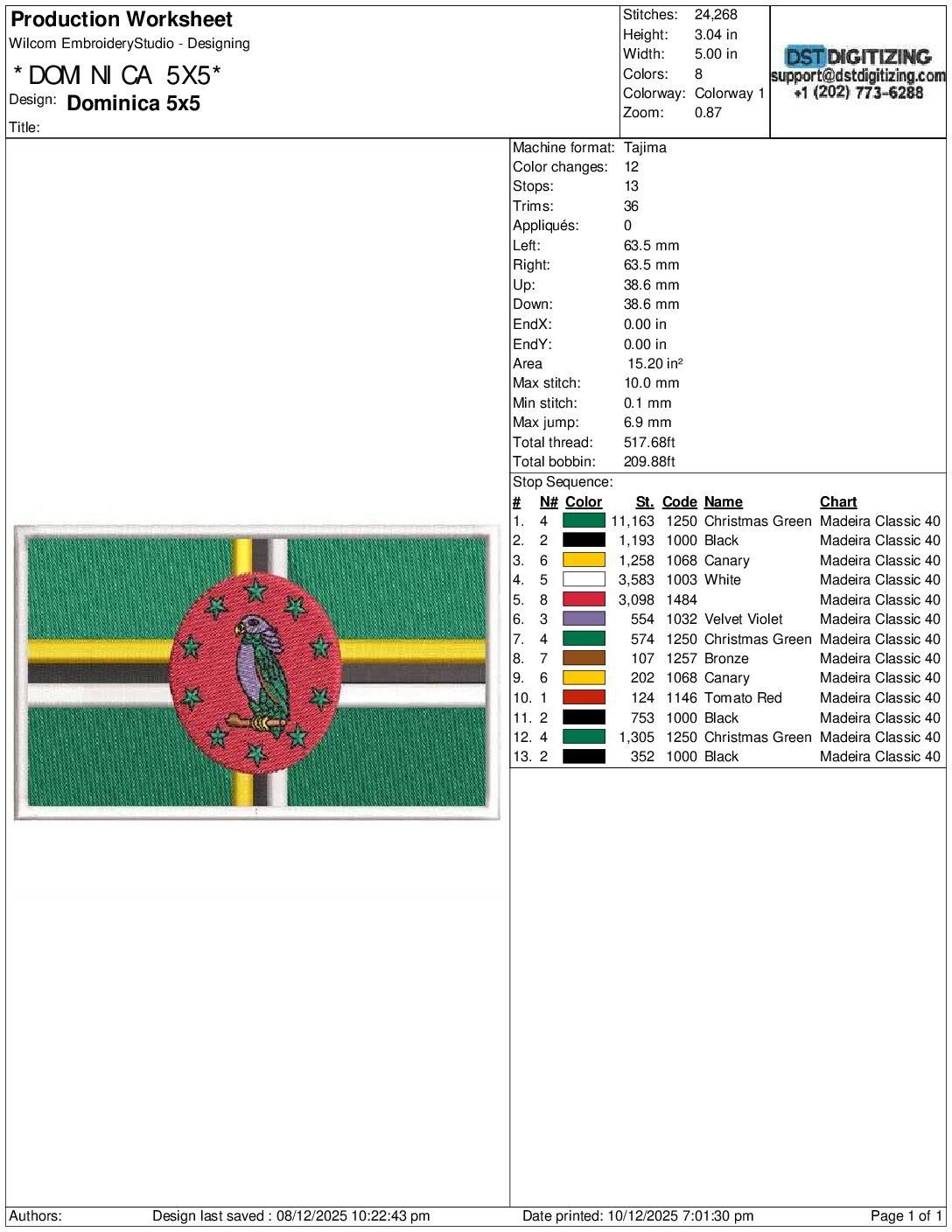 high-quality Dominica Flag Embroidery Design, professionally digitized for smooth, clean stitching on any fabric.