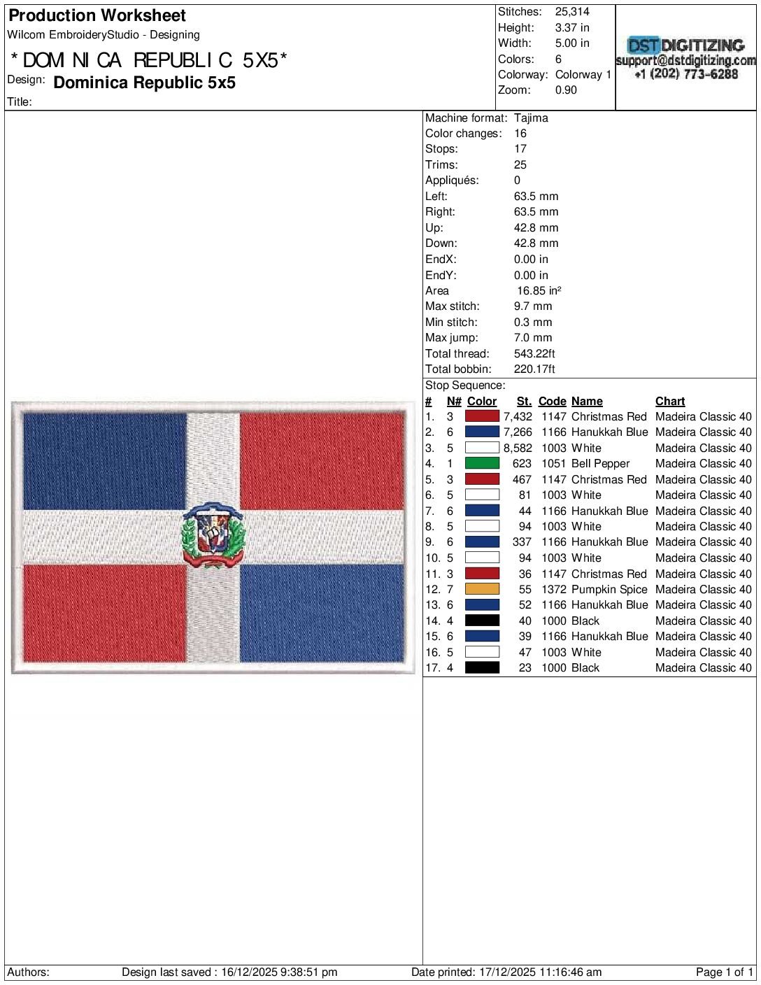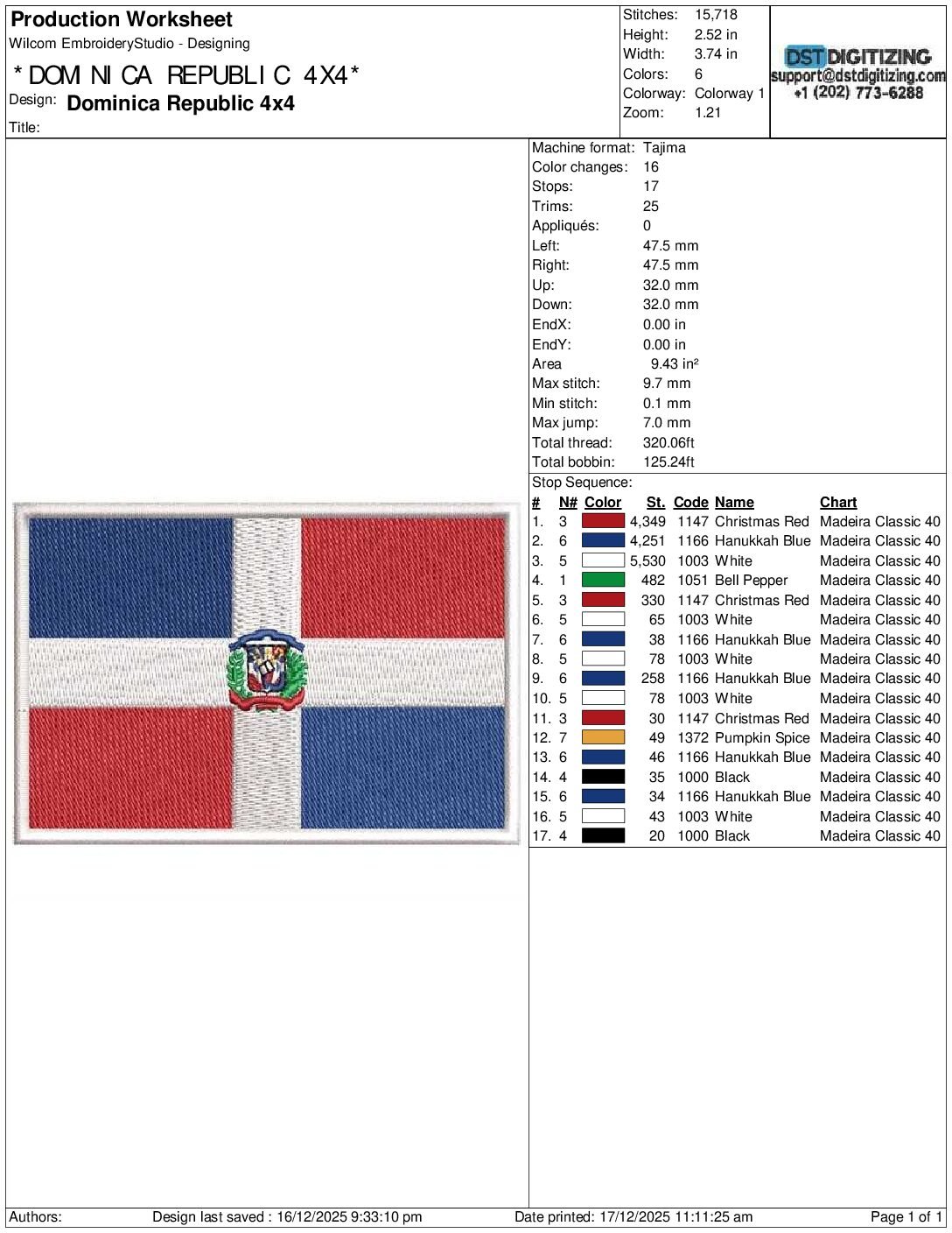 high-quality Dominica Republic Flag Embroidery Design, professionally digitized for smooth, clean stitching on any fabric.