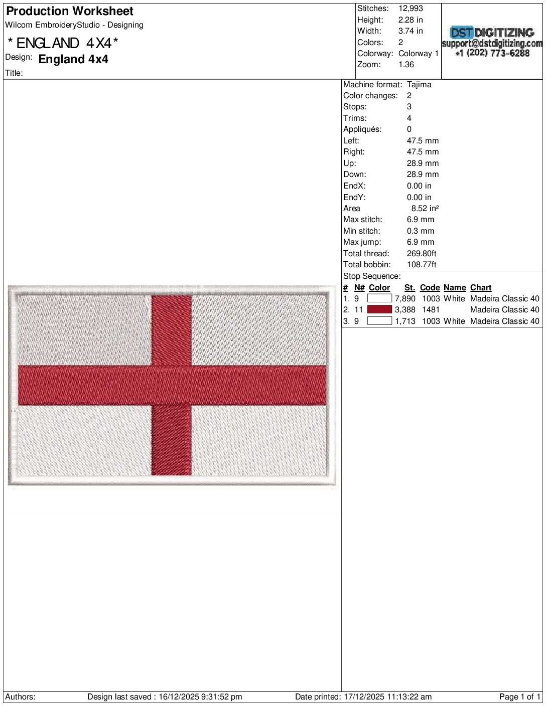 high-quality england Flag Embroidery Design, professionally digitized for smooth, clean stitching on any fabric.