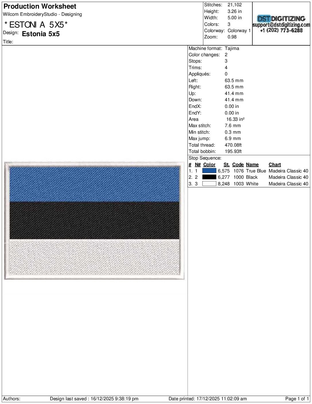 high-quality Estonia Flag Embroidery Design, professionally digitized for smooth, clean stitching on any fabric.