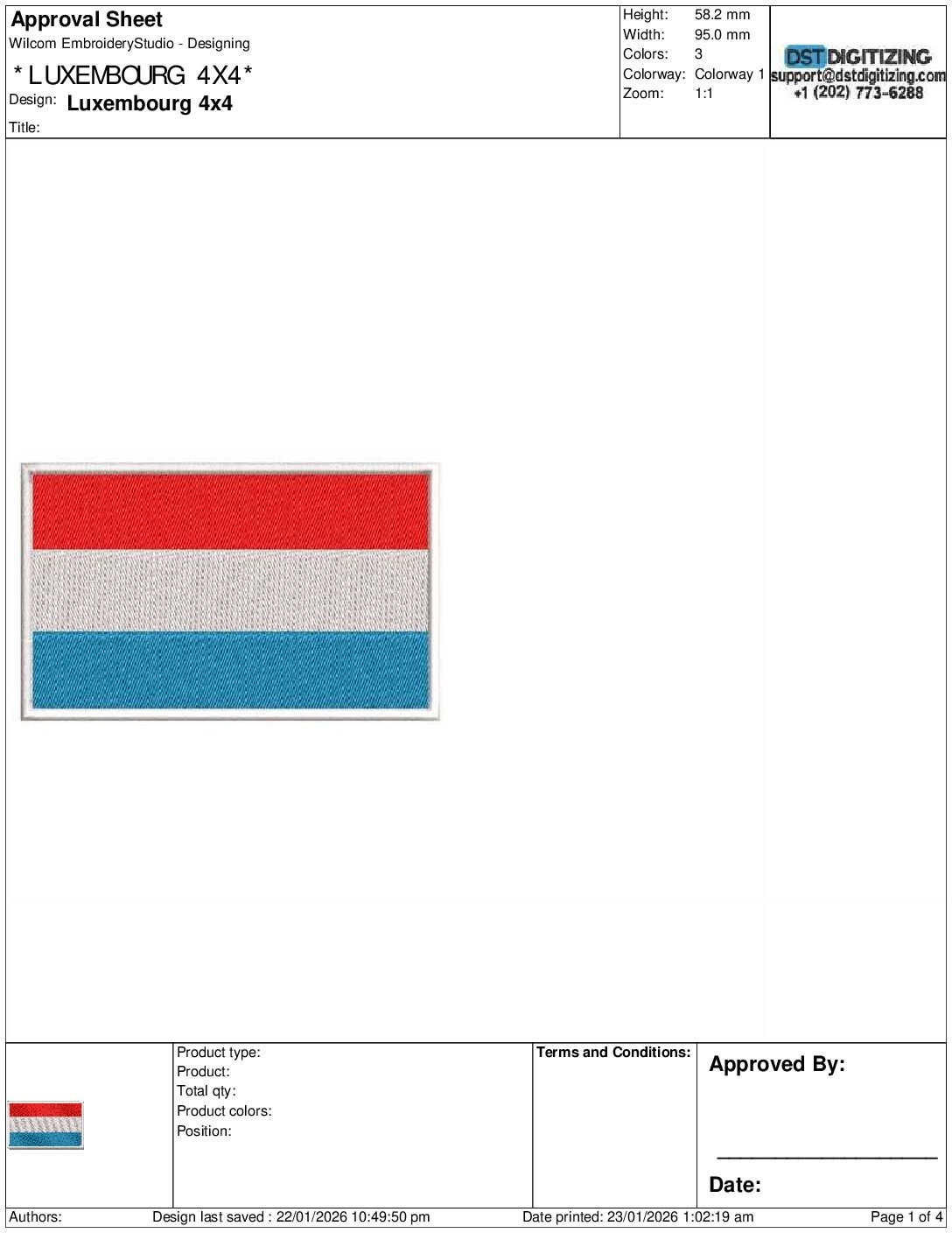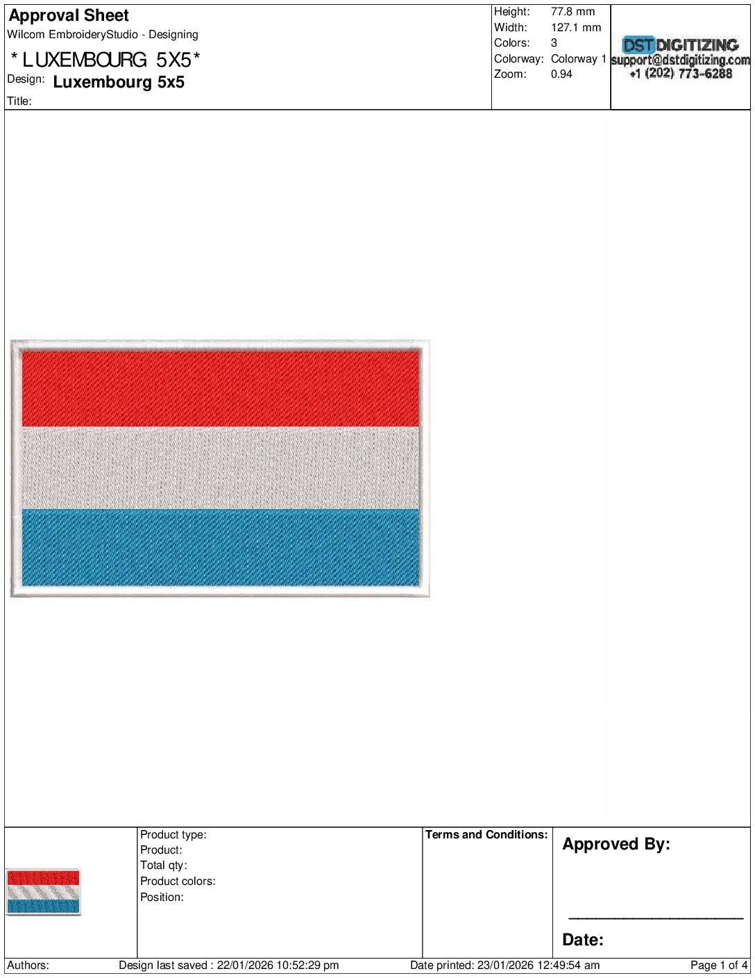 high-quality Luxembourg Flag Embroidery Design, professionally digitized for smooth, clean stitching on any fabric.